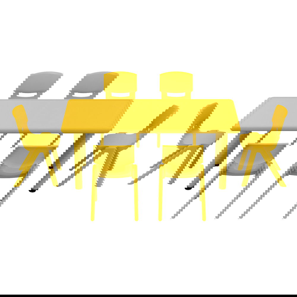 Die Kunststoffkappen an den Tischbeinen schonen den Fußboden und verhindern Kratzer sowie unschöne Abnutzungsspuren. Der Tisch ist in mehreren Farben erhältlich – gelb, rot, grün und blau – und fügt sich damit wunderbar in jede Raumfarbe ein. Entsprechend der Spielzeugnorm EN 71 gefertigt, bietet der Tisch Felix hohe Sicherheit und Stabilität, die für den Kindergarten- und Schulalltag unverzichtbar sind.