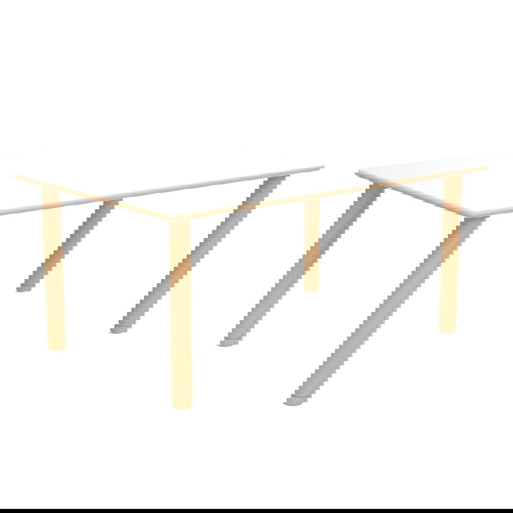 Das klassische rechteckige Format erlaubt es, mehrere Tische nahtlos aneinanderzustellen. So können im Handumdrehen lange Tafeln für Feste oder große, quadratische Blöcke für Team-Projekte gebildet werden.