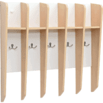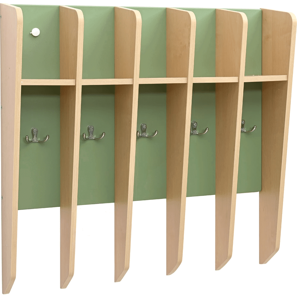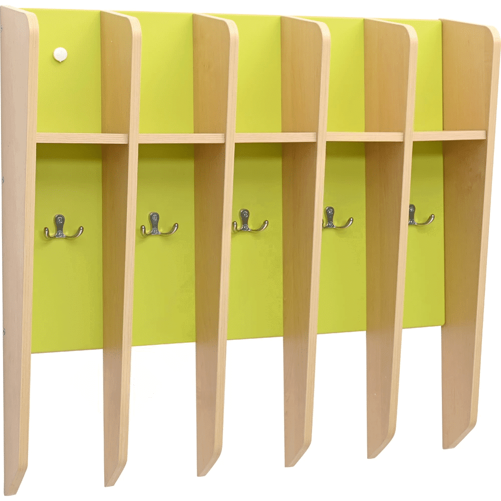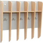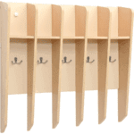 Unser Zahnputzbecherregal ist die ideale Lösung für jeden Kindergarten und jede Kita, die Wert auf Ordnung und Hygiene legt. Gefertigt aus farbiger MDF-Platte und laminierter Spanplatte (Stärke 1 cm), ist dieses Regal nicht nur robust, sondern auch ansprechend gestaltet. Es bietet Platz für 5 Zahnputzbecher und ist mit 5 Doppelhaken ausgestattet, an denen Handtücher ordentlich aufgehängt werden können.