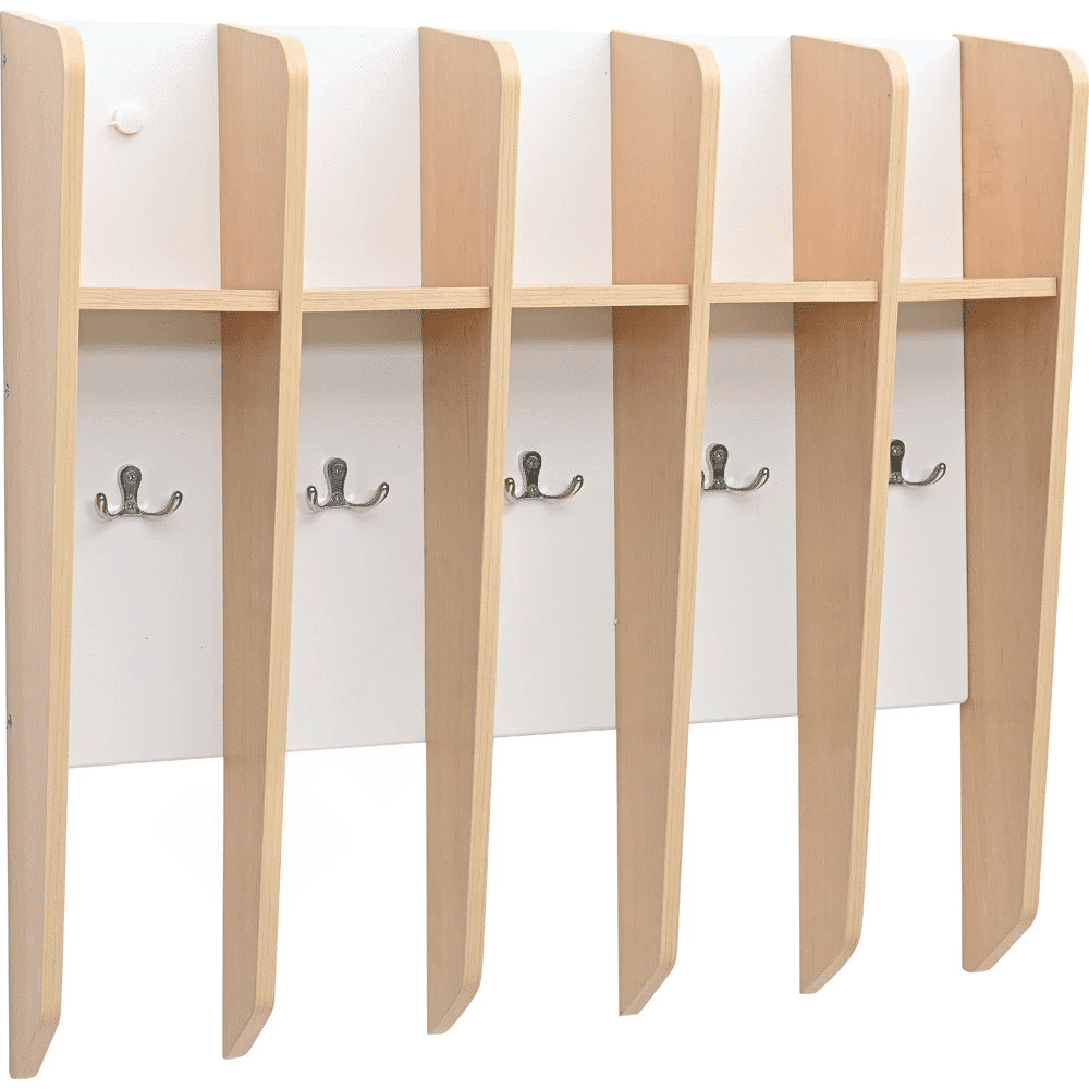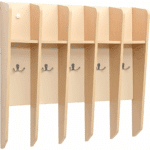 Unser Zahnputzbecherregal ist die ideale Lösung für jeden Kindergarten und jede Kita, die Wert auf Ordnung und Hygiene legt. Gefertigt aus farbiger MDF-Platte und laminierter Spanplatte (Stärke 1 cm), ist dieses Regal nicht nur robust, sondern auch ansprechend gestaltet. Es bietet Platz für 5 Zahnputzbecher und ist mit 5 Doppelhaken ausgestattet, an denen Handtücher ordentlich aufgehängt werden können.