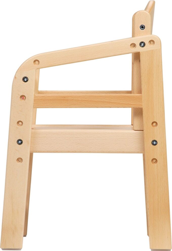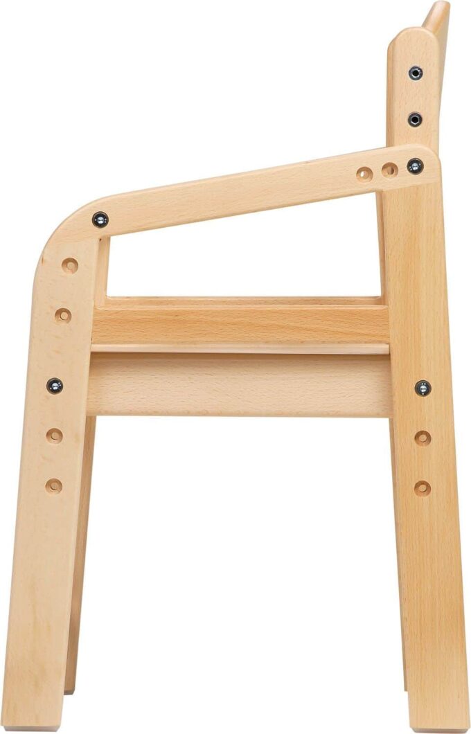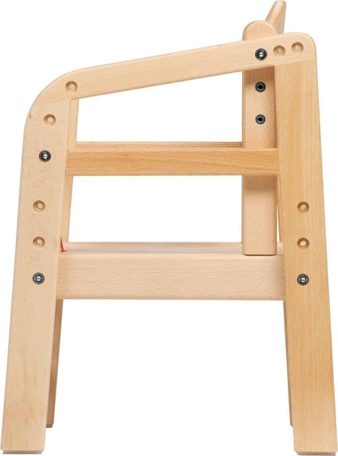 Dieser Stuhl besteht aus hochwertigem Buche Massivholz und Buche Schichtholz, was ihn besonders stabil und langlebig macht. Die Sitzbreite von 30 cm bietet reichlich Platz und Komfort für die Kleinsten. Die glatte, leicht zu reinigende Oberfläche gewährleistet eine einfache Pflege und Hygiene, was besonders in Kinderkrippen von großer Bedeutung ist.