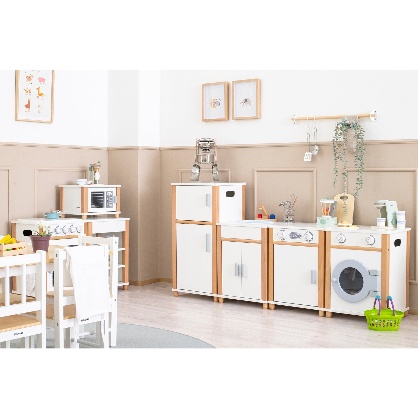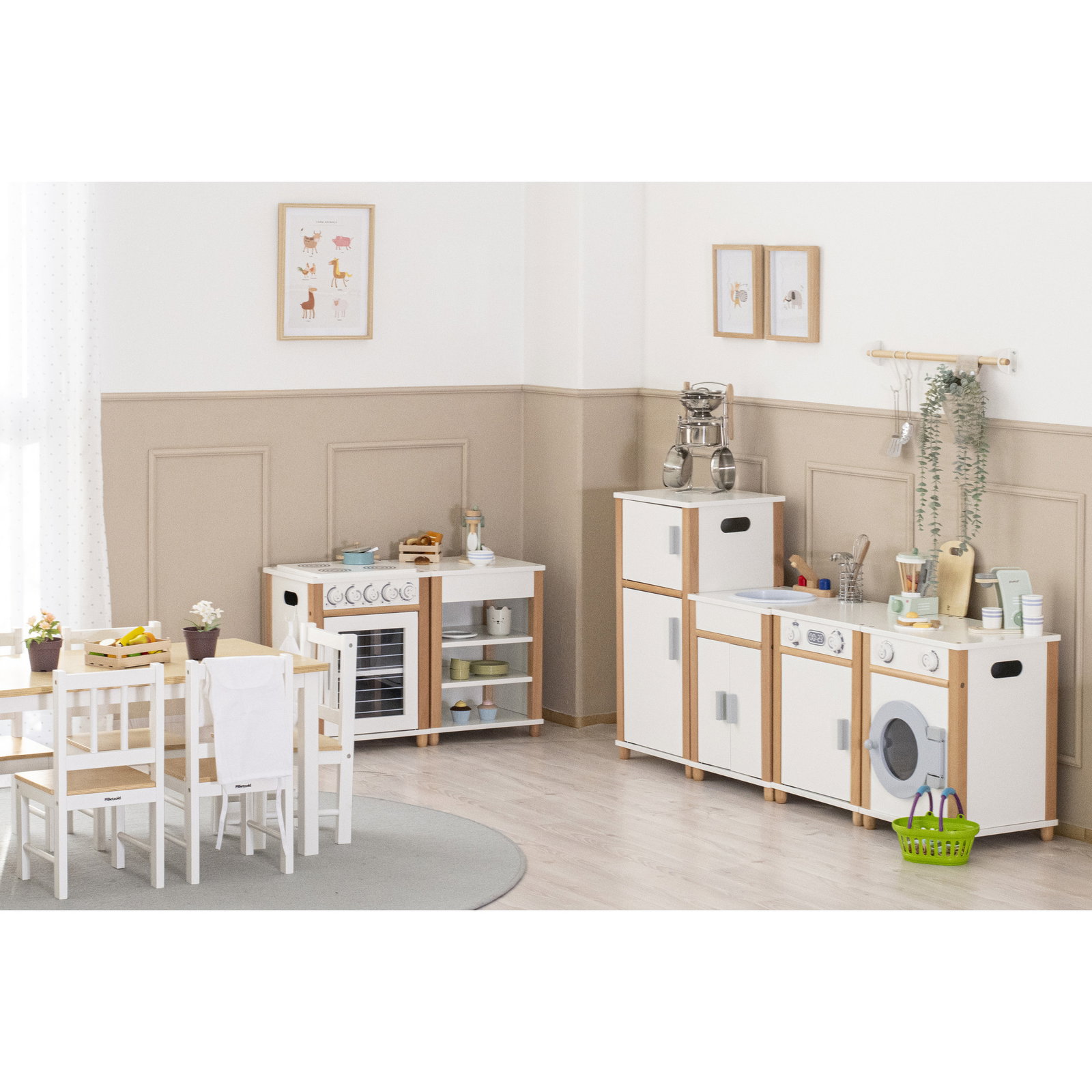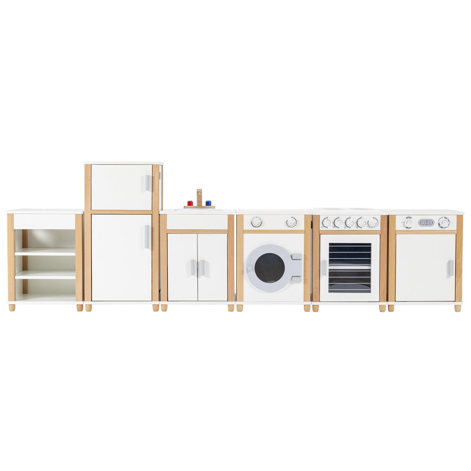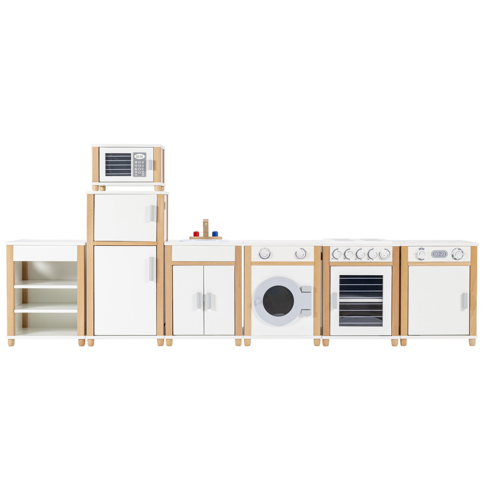 - Kompletter Haushalt: Mit Herd, Backofen, Kühlschrank, Spülbecken, Waschmaschine und Spülmaschine deckt diese Zeile alle wichtigen Stationen eines Haushalts ab. Kinder lernen spielerisch die Abläufe vom Kochen bis zum Wäschewaschen kennen.