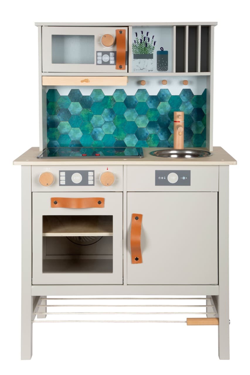 - Liebevolle Details für maximalen Spielspaß: Vom Waschbecken aus Metall bis zu den mit Küchendetails bedruckten Innenwänden von Kühlschrank und Backofen – viele kleine Elemente schaffen eine realistische Spielwelt und laden Kinder ein, ihre Fantasie voll zu entfalten.