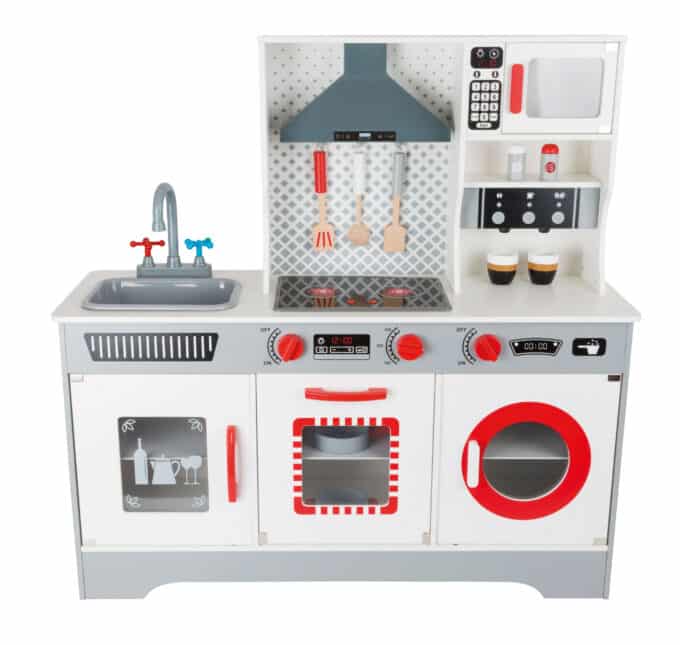 - Modernes Design als Blickfang: Das stilvolle Design in Grau und Weiß mit dezenten Farbakzenten fügt sich harmonisch in jedes moderne Kinder- oder Wohnzimmer ein. Diese Küche ist nicht nur ein Spielzeug, sondern auch ein schönes Möbelstück.