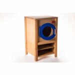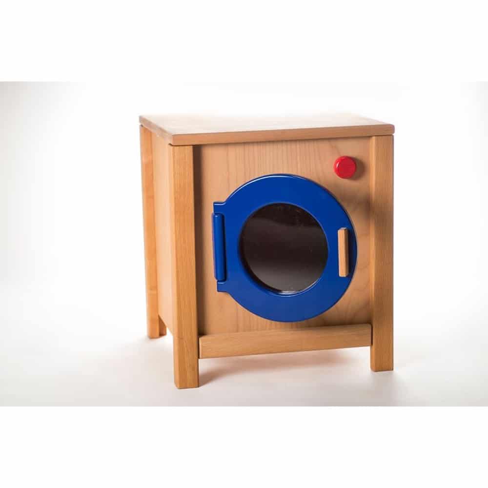 Die Waschmaschine ist mit einer blau lackierten Tür ausgestattet, die dem Spielzeug einen frischen und einladenden Look verleiht. Die Tür verfügt über einen Plexiglaseinsatz, durch den die kleinen Haushaltshelfer einen Blick auf alle ihre „Waschladungen“ werfen können. Mit einer Öffnung von ca. 20 cm Durchmesser ist es einfach, die dazugehörigen Spielzeuge oder Wäsche zu „beladen“. Kinder können die Waschmaschine leicht nutzen, um ihr eigenes Spielzeug-Abenteuer im Haushalt zu erleben.