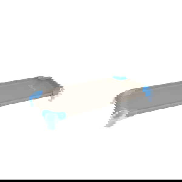 Diese patentierte Liege ist besonders benutzerfreundlich und kann im Ruheraum mühelos verschoben werden. Zudem lässt sie sich bis zu 25 Stück übereinander platzsparend stapeln, was die Lagerung und Handhabung erleichtert. Die Liege wird unmontiert geliefert und ist bis 50 kg belastbar, geeignet für Kinder ab 1,5 Jahre.