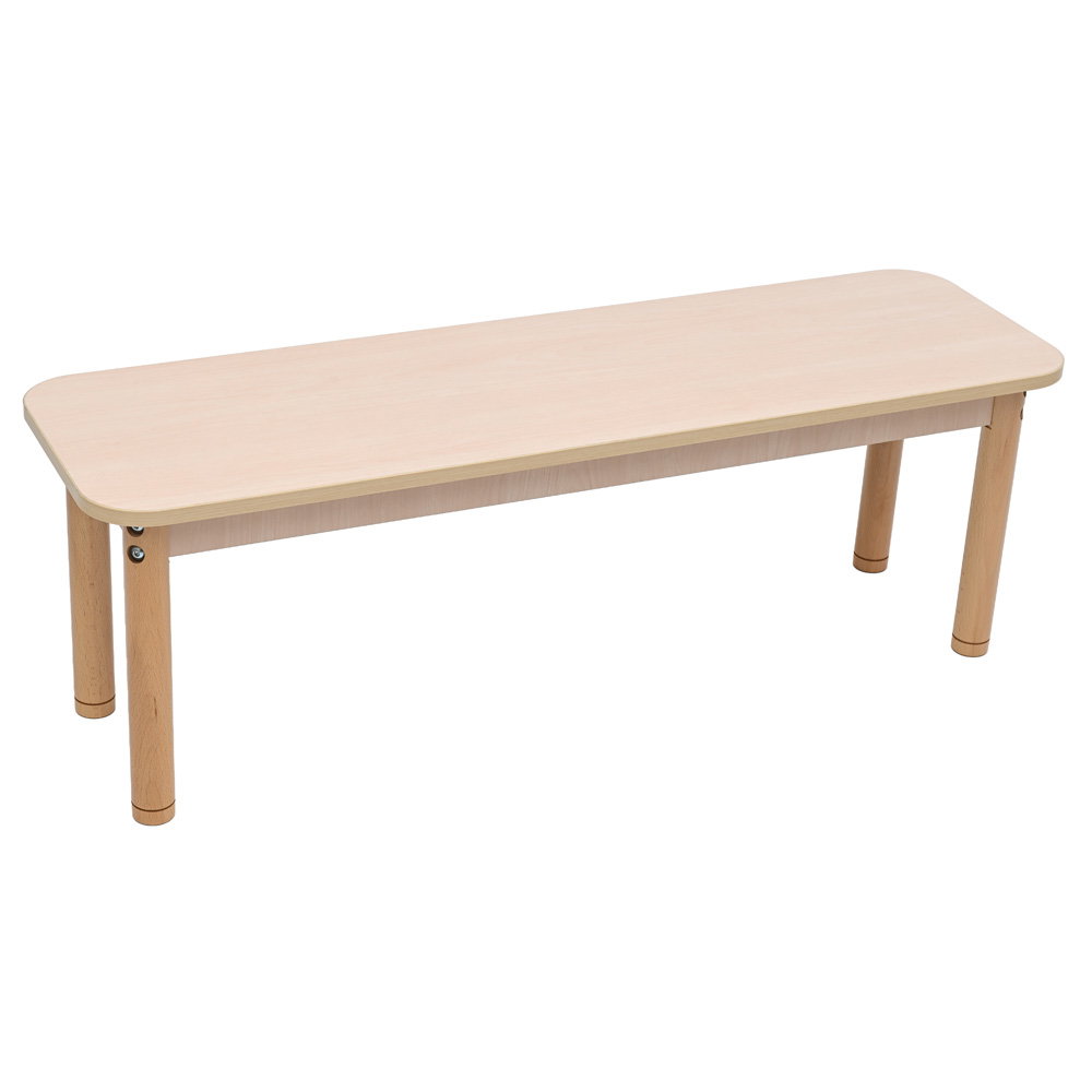 Robuste Kindersitzbank (Sitzhöhe 35 cm) im zeitlosen Ahorn-Design. Pflegeleichte, kratzfeste Oberfläche & stabile, runde Beine. Ideal für Kita & Kinderzimmer.