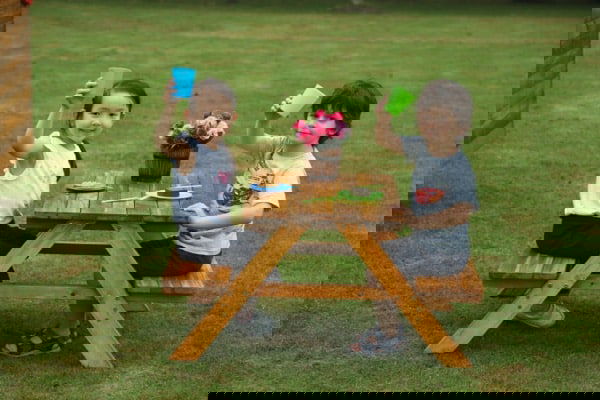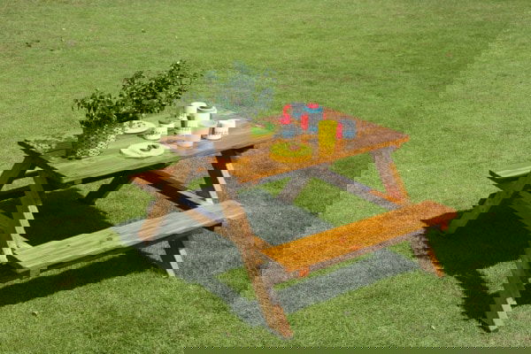 Diese Sitzgruppe ist wie gemacht für das Miteinander. Mit Platz für bis zu vier Kinder lädt sie dazu ein, gemeinsam zu picknicken, Brettspiele zu spielen oder Malbücher auszumalen. Solche gemeinsamen Aktivitäten auf Augenhöhe stärken das Gruppengefühl und fördern soziale Kompetenzen wie Teilen und Kommunizieren. Es ist der perfekte Ort für die „kleine Konferenz“ im Garten. - Doppelter Schutz für maximale Lebensdauer