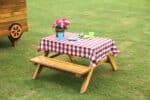 Speziell für Kinder ab drei Jahren konzipiert, bietet diese Sitzgruppe Platz für bis zu vier Freunde. Sie besticht durch ihre natürliche Ästhetik, die sich harmonisch in jede grüne Umgebung einfügt, und überzeugt gleichzeitig durch eine Konstruktionsweise, die auf Langlebigkeit und Widerstandsfähigkeit ausgelegt ist. Die Kombination aus kesseldruckimprägniertem Kiefernholz und modernen WPC-Elementen macht dieses Möbelstück zum idealen Begleiter durch alle Jahreszeiten. Mit der Kindersitzgruppe von WISDOM investieren Sie in Qualität, die nicht nur gut aussieht, sondern auch dem lebhaften Alltag von Kindern mühelos standhält.