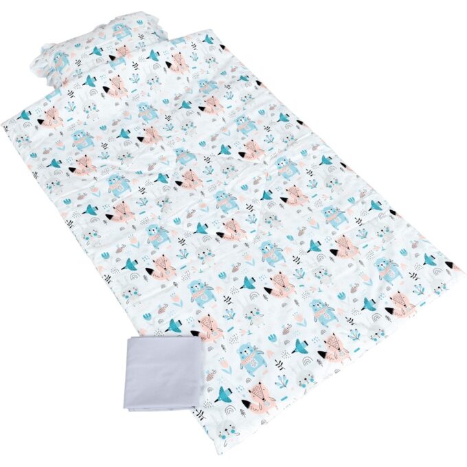Dieses liebevoll entworfene Set sorgt für eine behagliche Schlafumgebung, ideal für Kindergärten und das eigene Heim. Die praktischen Maße und das verspielte Tiermuster machen es zum Lieblingsstück in jedem Kinderzimmer. Da das gesamte Set maschinenwaschbar ist, bleibt es stets hygienisch und frisch.