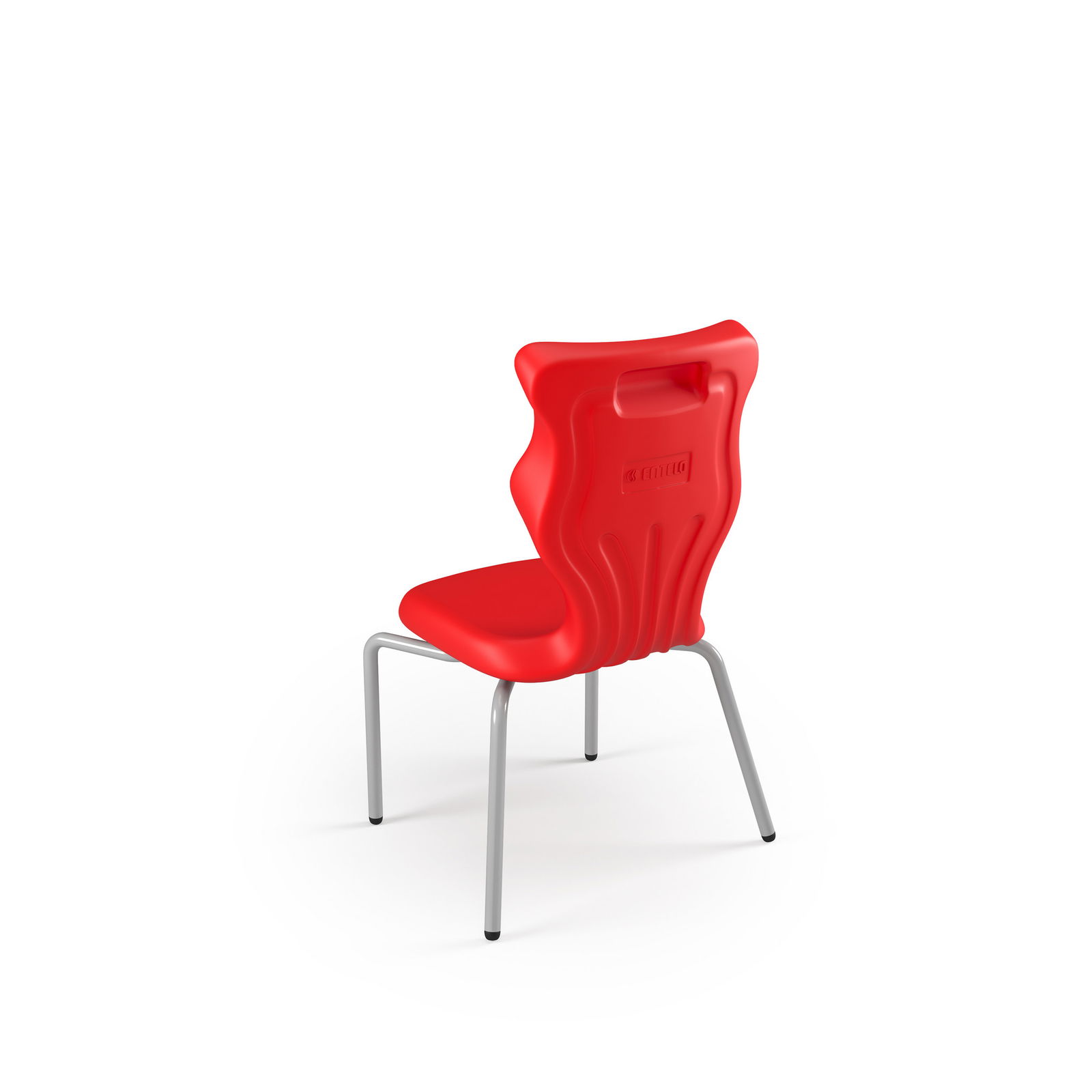 Ein integriertes Griffloch in der Rückenlehne macht das Handling kinderleicht. Selbst jüngere Schüler können ihren Stuhl so problemlos anheben, umstellen oder stapeln.