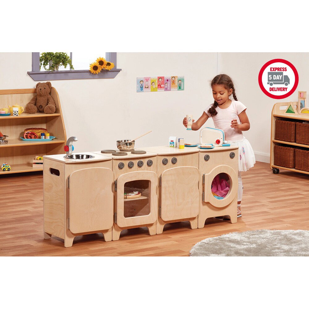 Millhouse Kita-Spielküche: Das natürliche Set aus Herd, Kühlschrank, Waschmaschine und Spüle