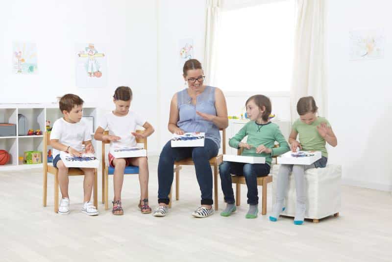 Machen Sie Platz für musikalische Momente mit der Klacks Box von Baff! Diese innovative Trommellösung ist perfekt für Kindergärten, Schulen und Vorschulbereiche und sorgt dafür, dass der Rhythmus immer präsent ist. Einfach auf den Tisch oder auf den Schoß legen, und schon können die kleinen Musiker ihre ersten Trommelbeats zum Besten geben.