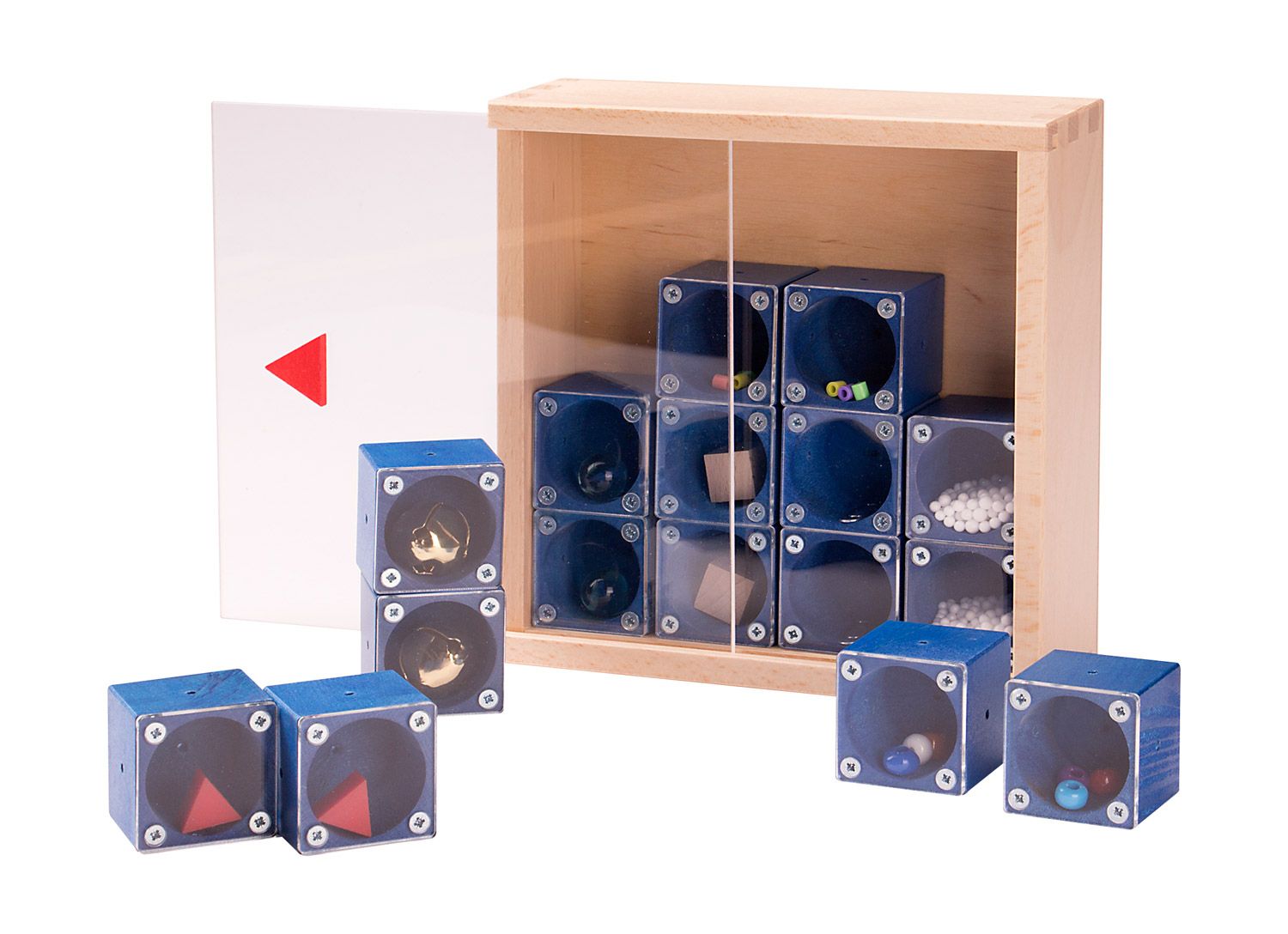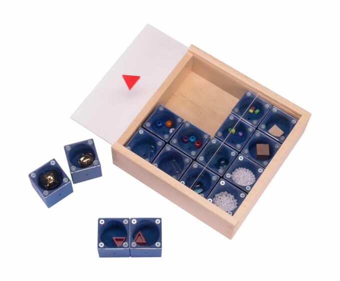 Die 16 Würfel (jeweils 3,9 x 3,9 cm) sind mit verschiedenen Klängen gefüllt, die beim Schütteln der Würfel hörbar werden. Die Kinder suchen nach passenden Klangpaaren und lernen dabei, genau zuzuhören und aufmerksam zu sein. Dank des durchsichtigen Bodens können die Kinder sofort überprüfen, ob sie die korrekten Paare gefunden haben – ein spannender Anreiz, der das Spiel noch fesselnder macht!