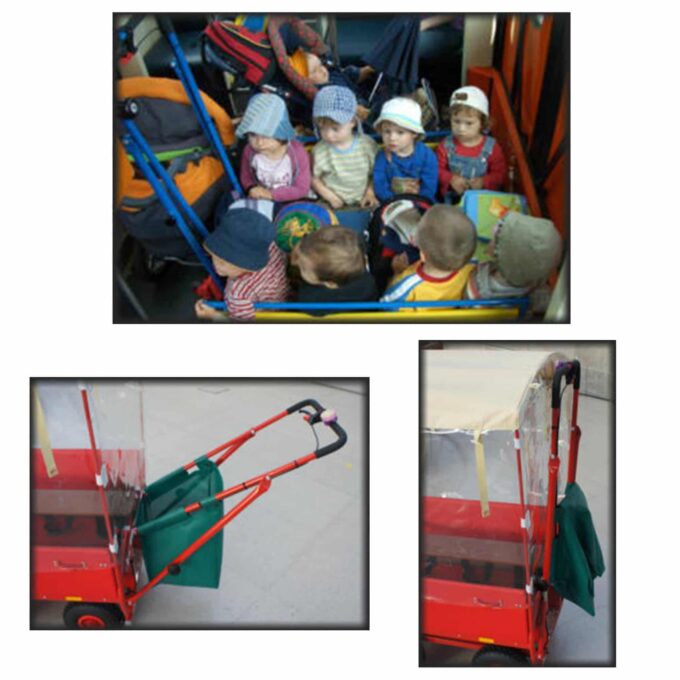 Der Klapplenker ist eine Möglichkeit Griffhöhe auf 4 verschiedenen Höhen zu arretieren oder komplett anzukippen. Wenn der Griffbügel hoch geklappt ist beträgt die Gesamtlänge des Wagens nur noch 97 cm. Im Gegensatz zu der allgemeinen Gesamtlänge von 1,60 m kann man somit über 60 cm Abstellfläche einsparen. Dies ist sehr praktisch, wenn man den Wagen mit in den Fahrstuhl, in die U-Bahn oder in die Straßenbahn nehmen möchte.