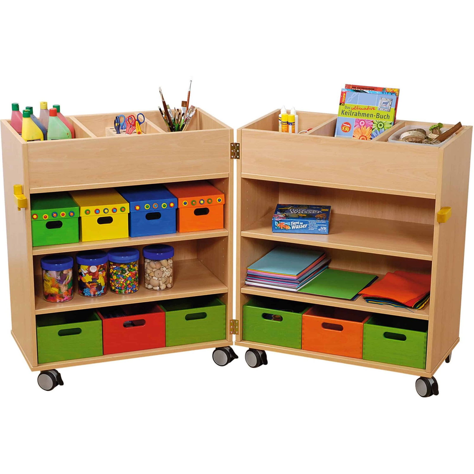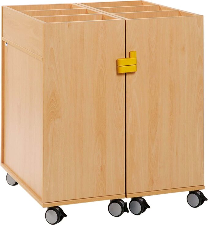 Der Klappschrank, Breite 77 cm von Dusyma ist die ideale Aufbewahrungslösung für Kindergärten und Schulen. Dank seiner durchdachten Platzeinteilung bietet er ausreichend Raum für Bücher, Spielzeug und sonstige Utensilien. Als Teil des Joy Plus Programms überzeugt er durch Spitzenqualität, Funktionalität und Mobilität.