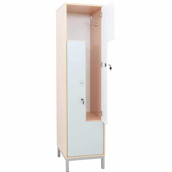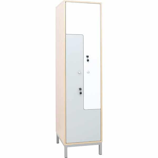 Kleiderschrank L mit 2 Fächern – weiß-graue Türen für Kindergärten & Krippen