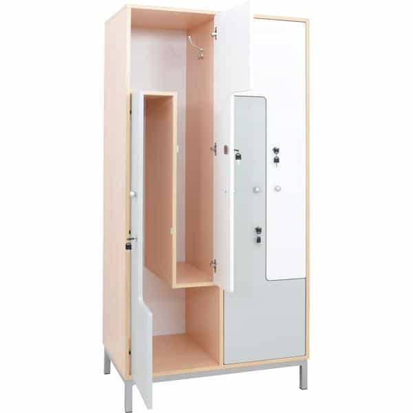 Kleiderschrank L mit 4 Fächern – weiß-graue Türen für Kindergärten & Krippen
