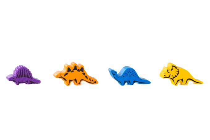 Die Formen und Farben der Dinos sind so harmonisch abgestimmt, dass sie sich nicht nur als Rollenspielzeug eignen, sondern auch als kreatives Stapelspielzeug. Besonders fantasievolle Kinder können mit den kleinen Dinos farbenfrohe Mandalas legen, indem sie die Dinosaurier kreisförmig anordnen.