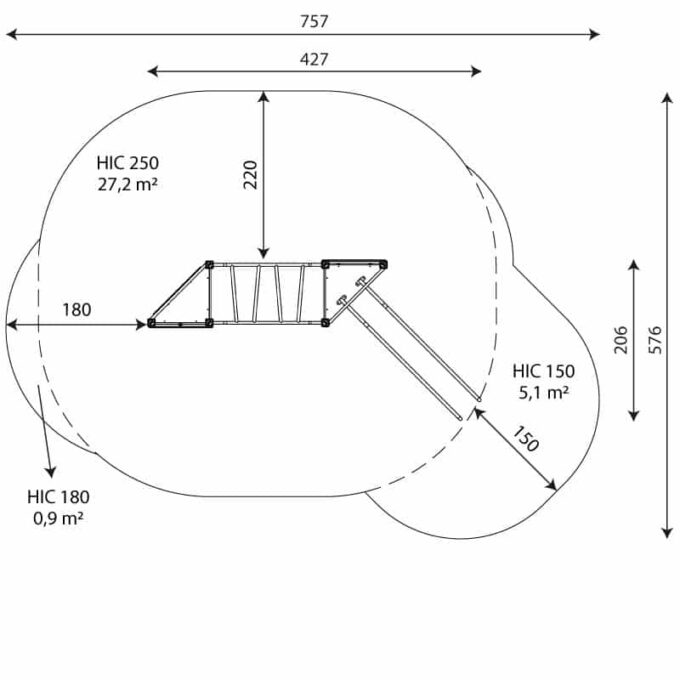 • Sicherheitszone: 33,2 m2
