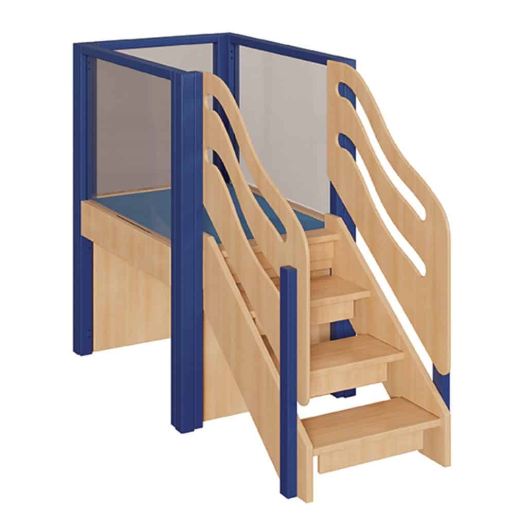 Kompakt und freistehend! Die kleine Spielburg mit Treppe hat eine Stellfläche von B x T: 82 x 197 cm und besteht aus dem Grundriss SB K01 freistehend und den folgenden Elementen:
