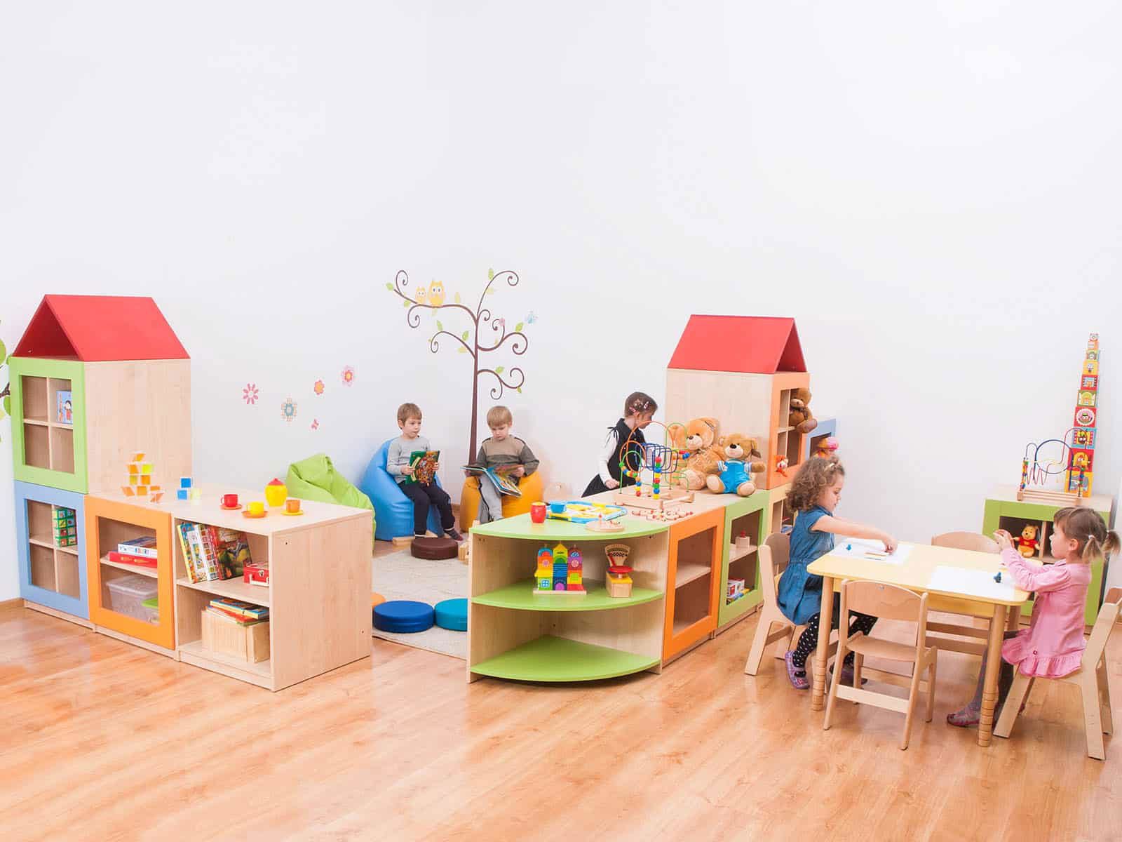 Kleiner Raumteiler-Schrank in 3 Farben für Kitas, Krippen und Kindergarten