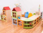 Das Möbelset ermöglicht eine interessante und kreative Konstruktion. Es ist auch sehr nützlich, um den Raum nicht nur in großen, sondern auch in kleineren Räumen aufzuteilen. Der schöne Ahornkorpus passt perfekt zu den farbenfrohen Elementen. Die Höhe der Schränke ist an die Körpergröße der Kinder angepasst, sodass sie problemlos jedes einzelne Regal nutzen können. Das Set besteht aus 18 mm starker laminierter Spanplatte. Kanten mit 2 mm ABS gesichert. Die Löcher in den Seiten der Schränke dienten der Verbindung der Module. Sie sollten miteinander verbunden werden, da dies die Stabilität der Struktur gewährleistet.