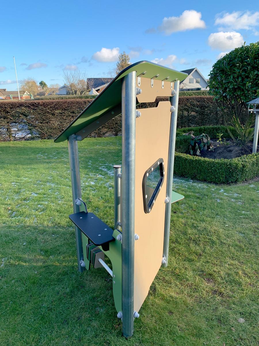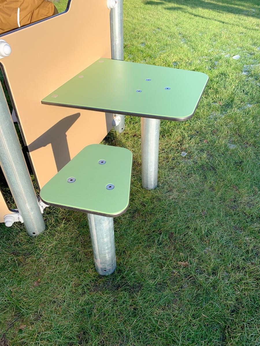 Kleines Spielhaus Bibi mit Spielwand und Tisch – LEDON Basic – LB086 für Kindergarten- Außenanlagen
