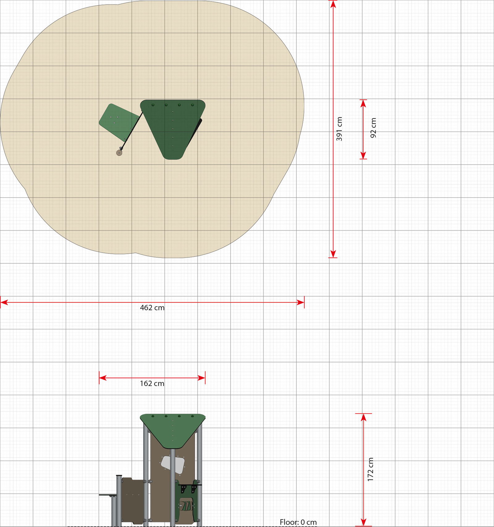 - Platzbedarf inkl. Sicherheitsabstände (LxB): 462 x 391 cm