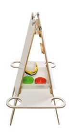 - Drinnen und draußen: Ob im Malraum, unter einem geschützten Vordach oder in der schattigen Gartenecke – die Kleinkindstaffelei ist vielseitig einsetzbar und passt sich jeder Umgebung an.