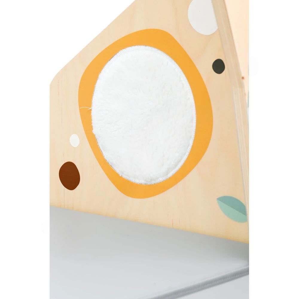 Jedes Element ist darauf ausgelegt, die Hand-Auge-Koordination und die Feinmotorik zu schulen. Die Hängeelemente aus Kunstleder mit integrierter Raschelfolie, Glöckchen und Quietsche animieren zum Greifen, Ziehen und Lauschen. Das Drehen der Zahnräder und das Bewegen der Schiebeelemente stärkt die kleinen Hände und Finger auf spielerische Weise. - Sicherer und geschützter Spielbereich