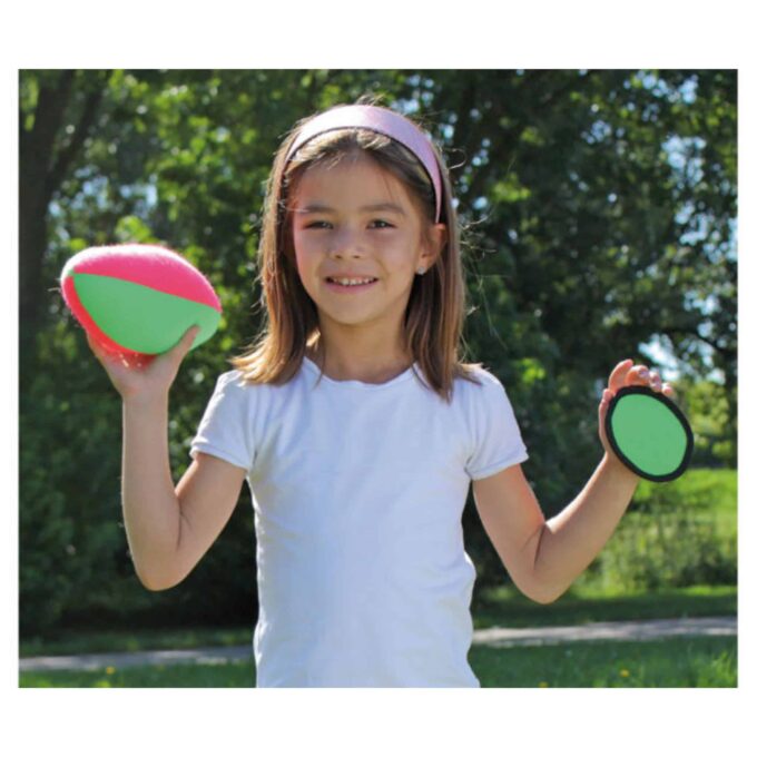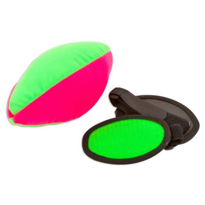 Der Klett-Football funktioniert ganz einfach: Zwei Kinder schnallen sich jeweils eine Klett-Fläche an ihre Hand. Die Größe der Klett-Flächen ist individuell einstellbar, sodass sie perfekt auf die Hände der Kinder angepasst werden können. Der spannende Moment kommt, wenn der Ball geworfen wird: Durch den speziellen Stoff sowie die Klettfläche bleibt der Football an der Hand des Fängers „kleben“, sobald er den Ball berührt. Perfekt, um die Kinder zu motivieren und das Vertrauen in ihre Fähigkeiten zu stärken!