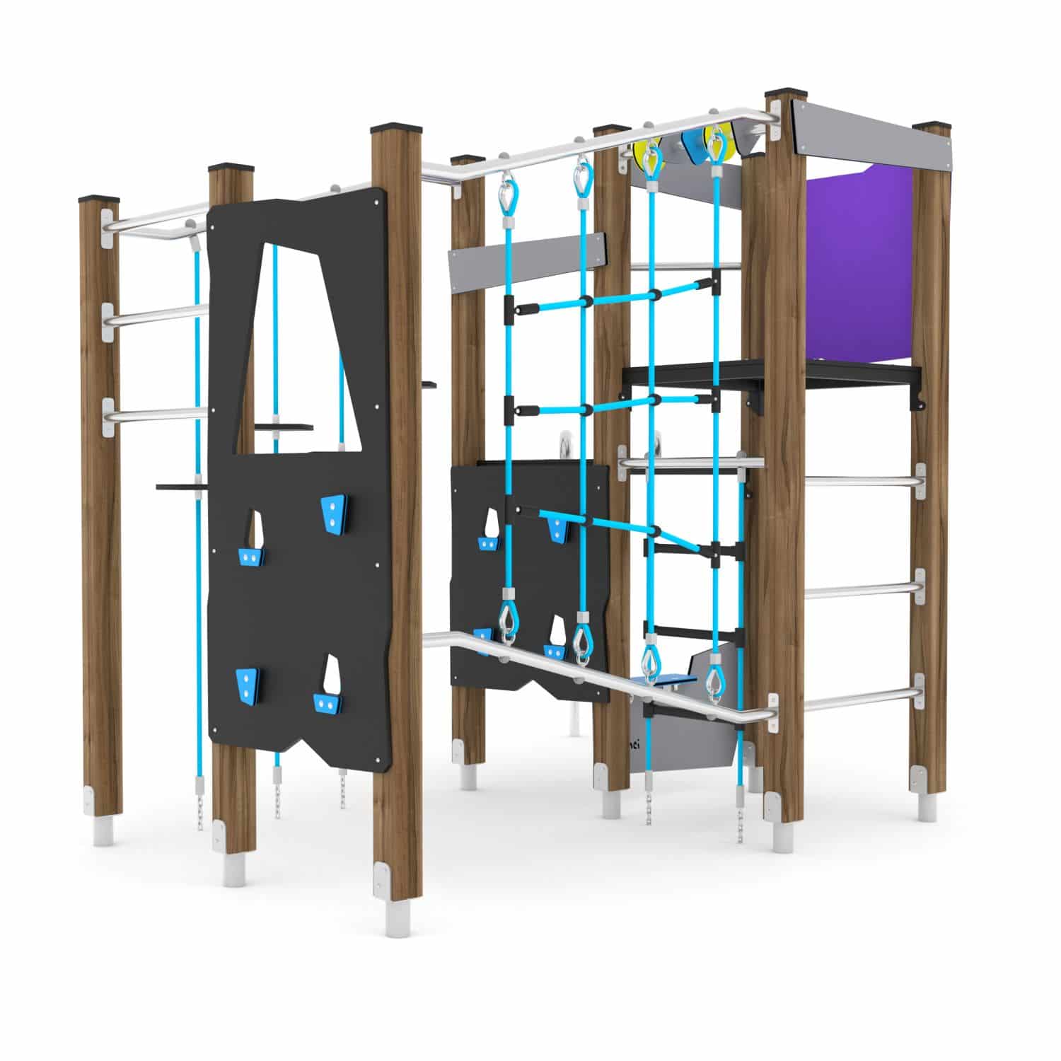 - Plattformen und Kletterwände aus strapazierfähigem, rutschfestem und wasserdichtem Sperrholz oder HPL-Platte,