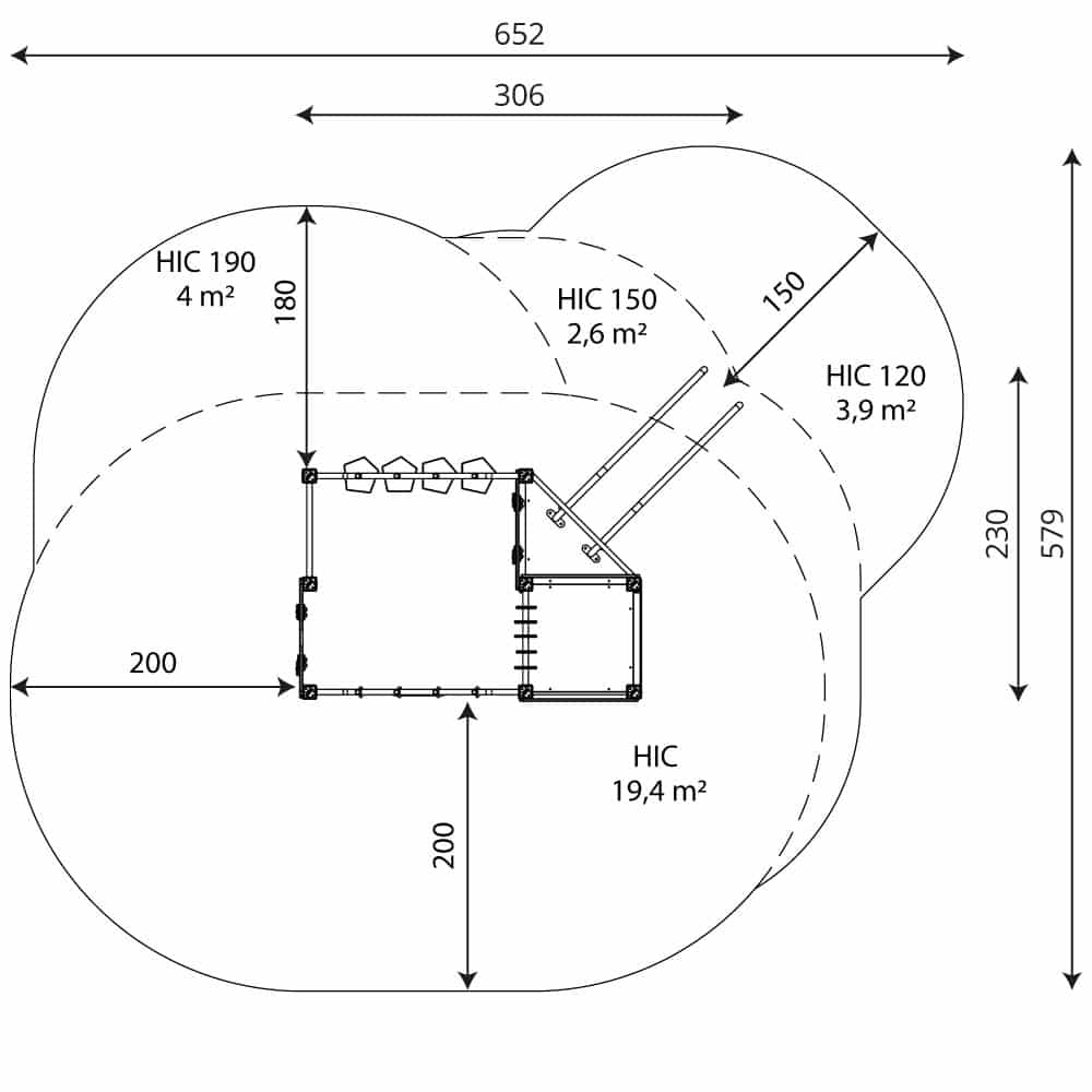 - Verankerung auf ebener Fläche, 80/70/60 cm tief;