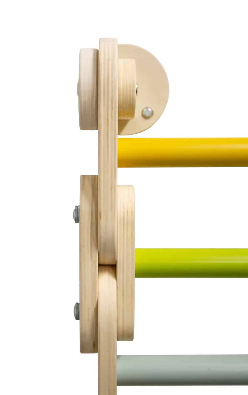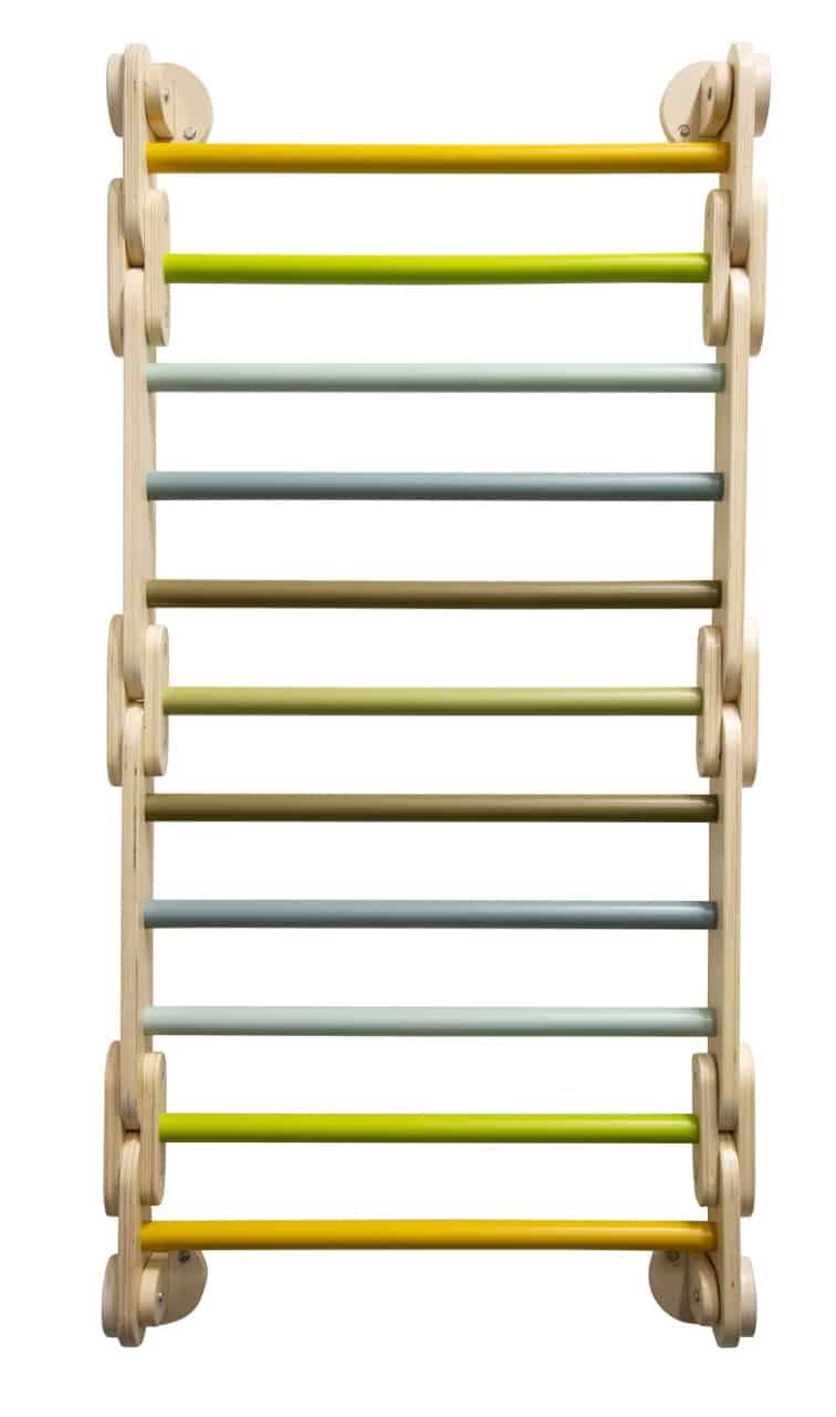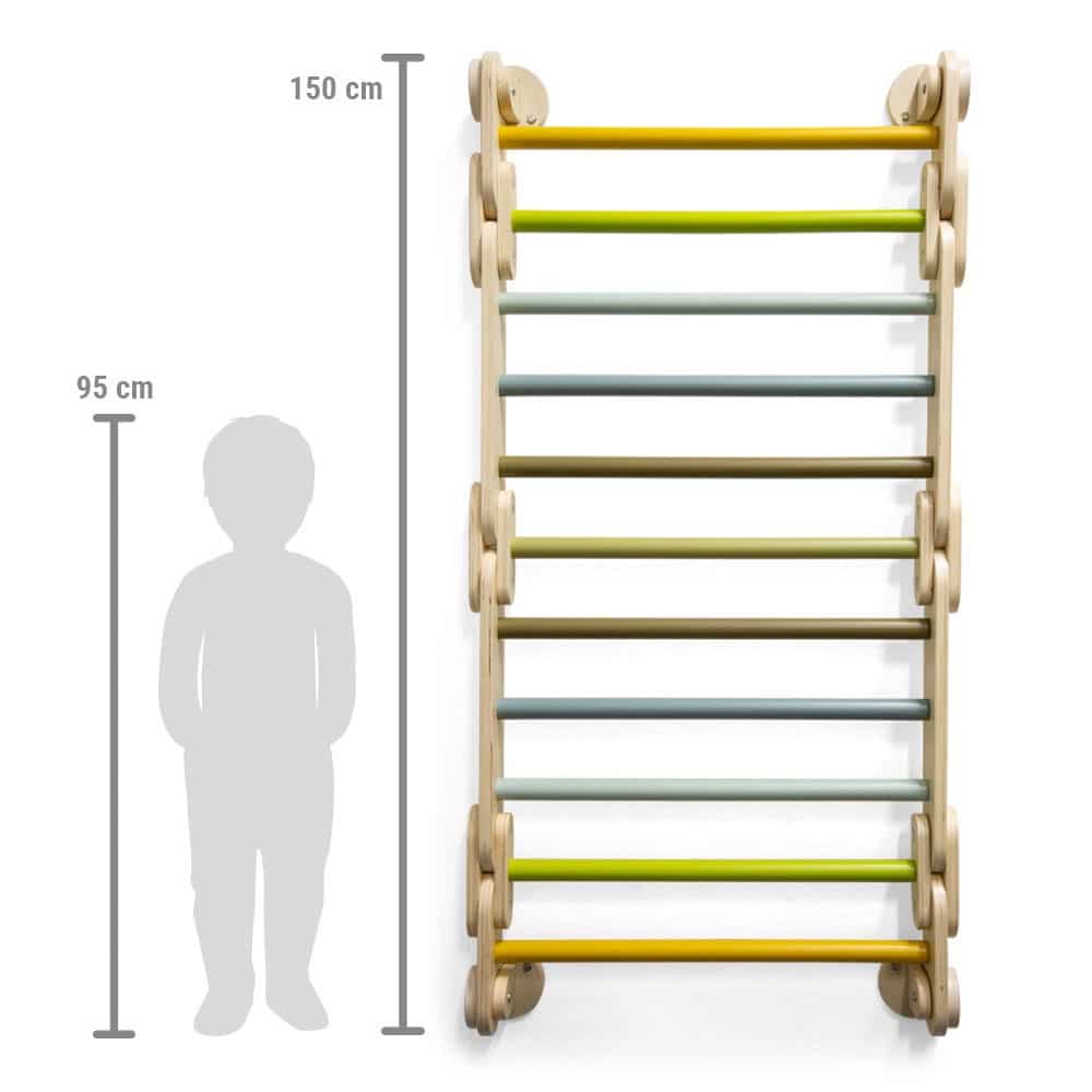 - Stilvolles Design für modernes Wohnen: Schluss mit bunten Plastik-Spielzeugen, die nicht zur Einrichtung passen. Das schlichte, skandinavische Design mit klaren Formen, modernen Farben und einem hohen Anteil an sichtbarem Naturholz macht die Sprossenwand zu einem ästhetischen Element, das sich harmonisch in jedes Kinder- oder Wohnzimmer einfügt.