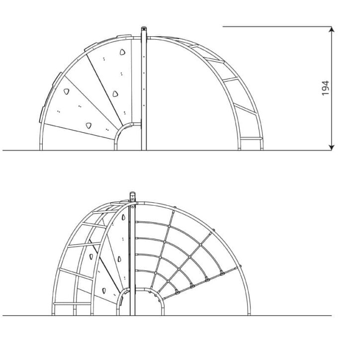 - Sicherheit hat oberste Priorität: Das Klettergerüst erfüllt alle Anforderungen der Norm EN 1176-1:2017+A1:2023. Sorgfältig abgerundete Kanten und sichere Verbindungen minimieren das Risiko von Verletzungen, während kalibrierte Ketten aus rostfreiem Stahl unbesorgtes Spielen garantieren.