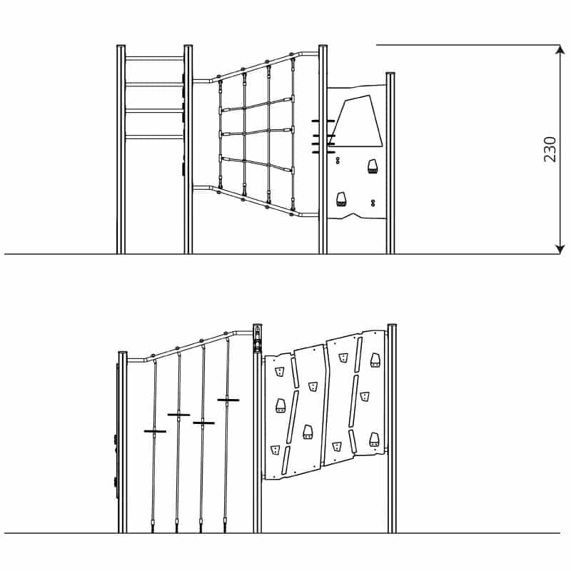 Technische Daten Klettergerüst mit Kletterwand, Stangen und Balancierelementen – RECYCLED RC1419 von Vinci Play
