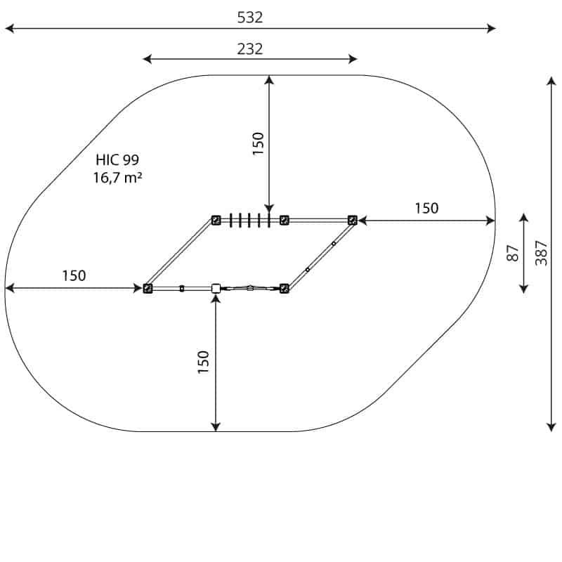 - Sicherheitszone: 16.7 m2