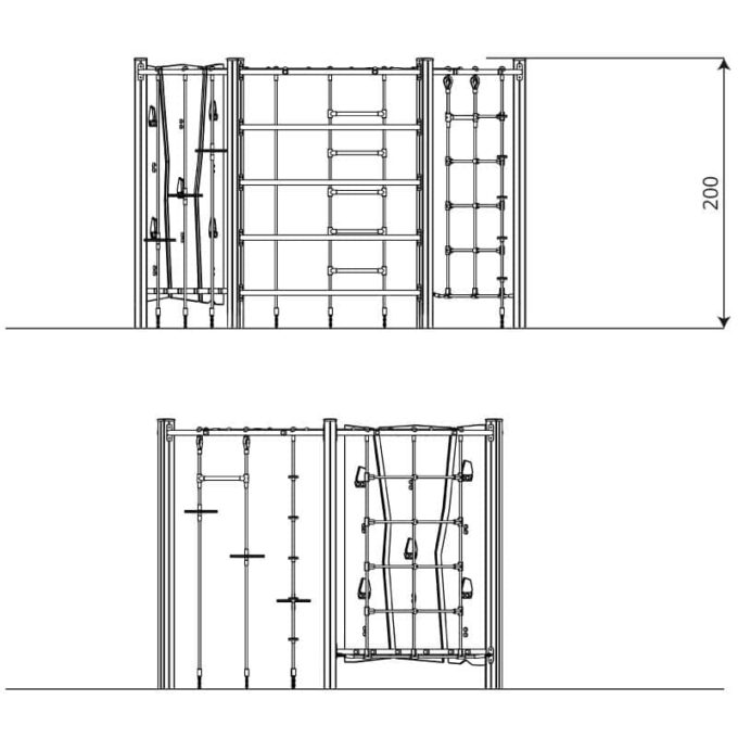 • Kletterwände aus langlebiger, rutschfester und wasserdichter Sperrholz- oder HPL-Platte, Klettersteine aus grünen HDPE-Platten aus 100 % recyceltem Material, z.B. Meeresabfälle wie Fischernetze und Seile, witterungsbeständig,