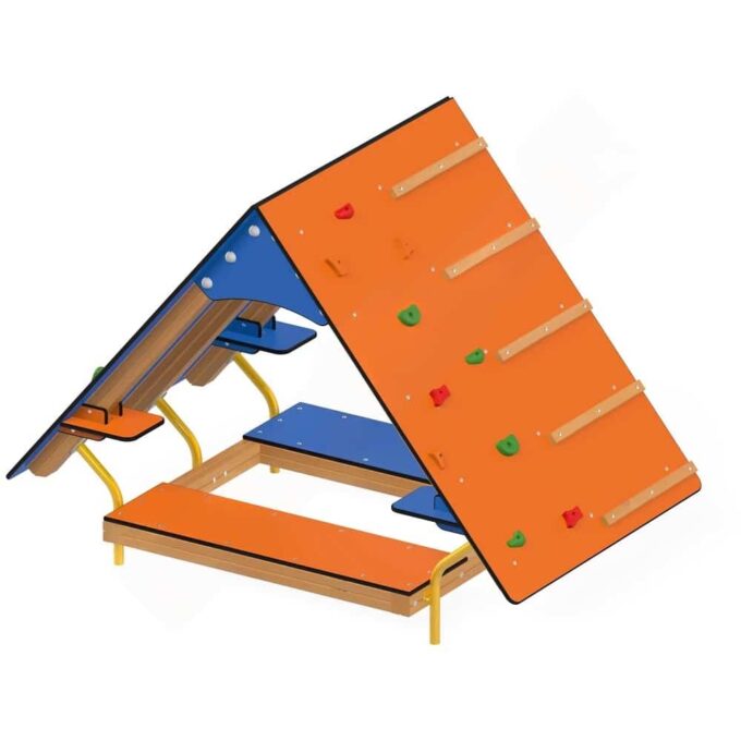 Das Kletterhaus ist zudem mit 2 Bänken und 4 kleinen Tischchen ausgestattet – ideal für gesellige Pausen und kreative Bastelstunden.