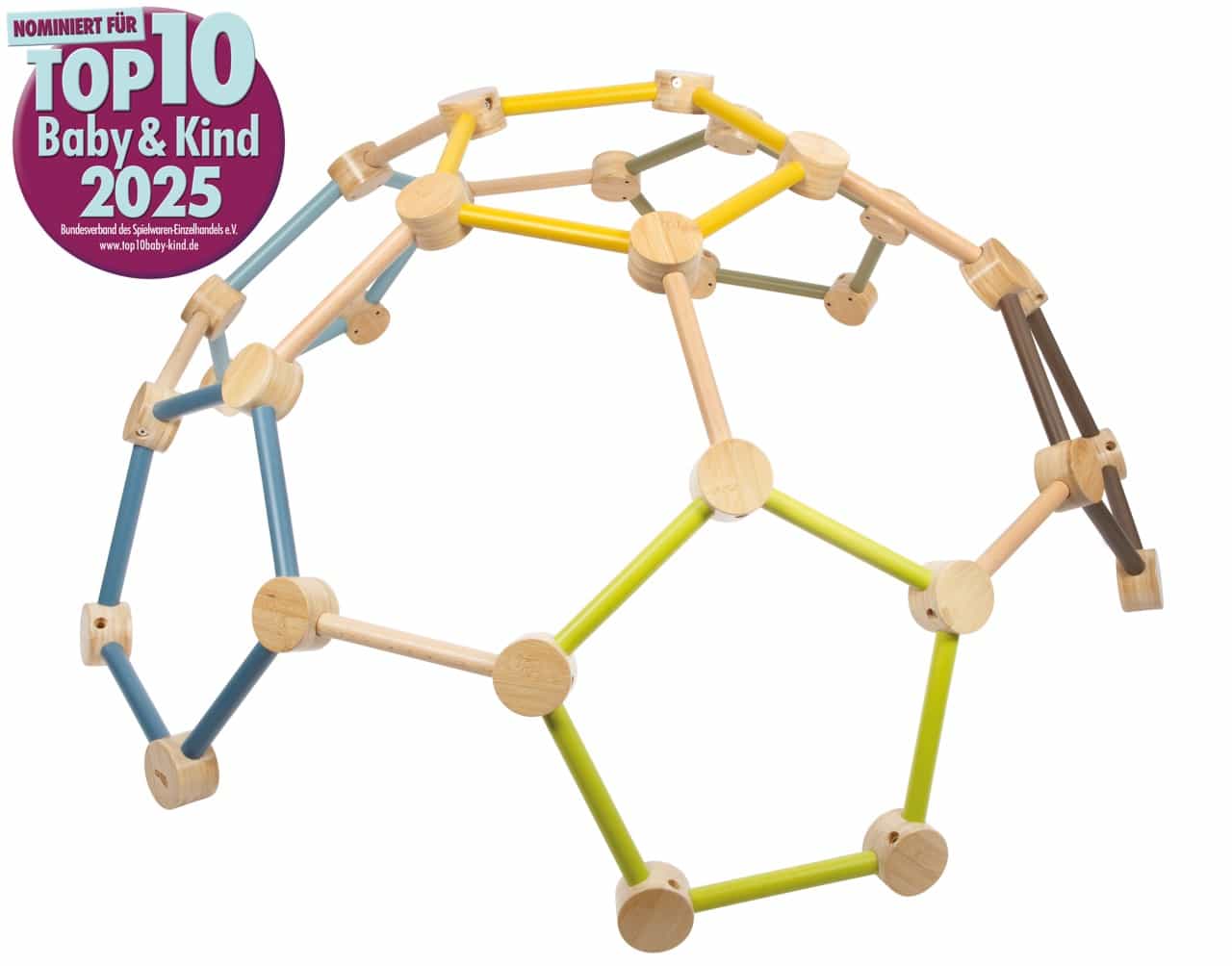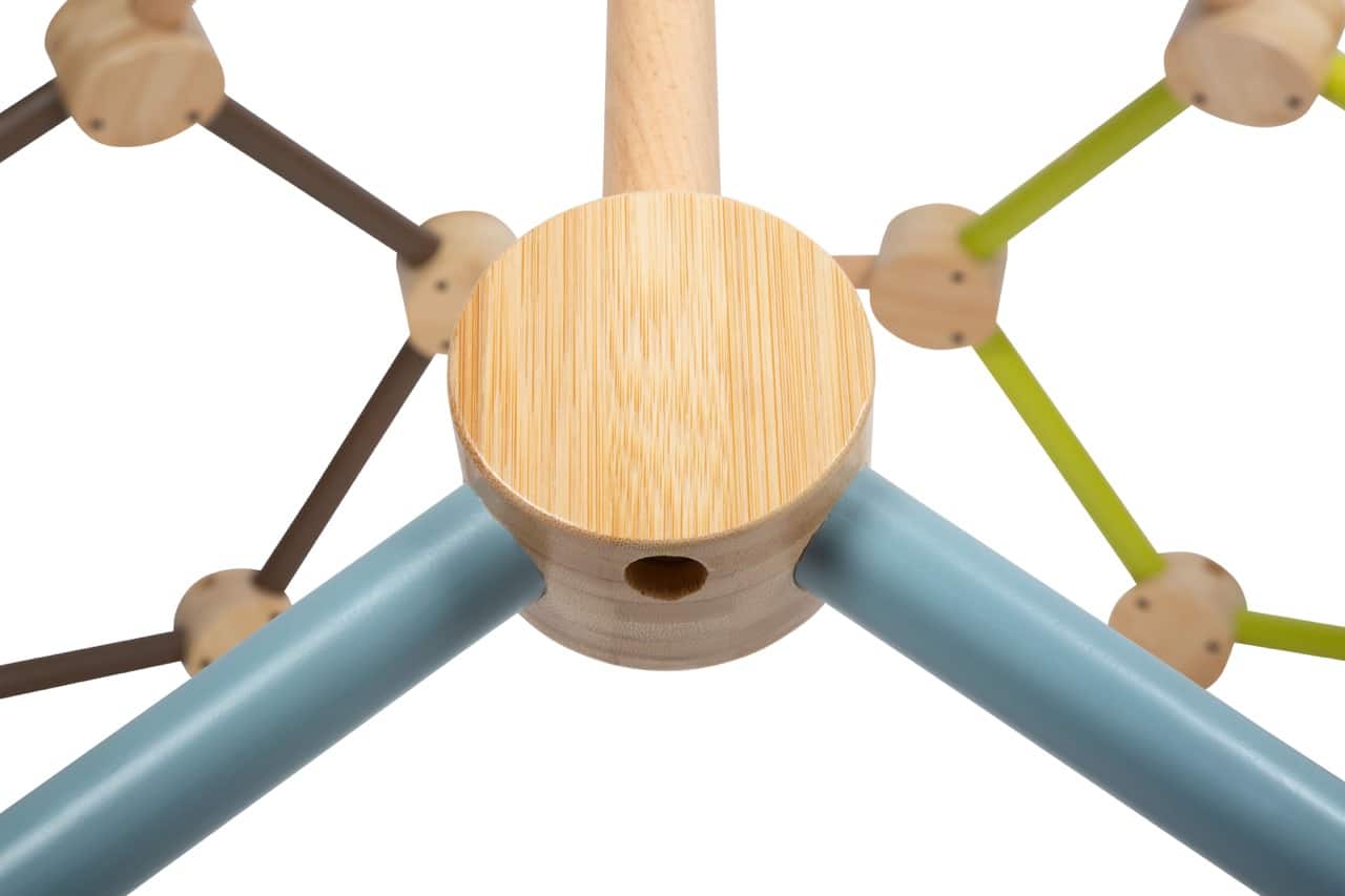- Hochwertiges Design mit natürlicher Optik: Mit ihrem hohen Anteil an naturbelassenem Holz fügt sich die Kletterkuppel harmonisch in jedes Kinderzimmer oder Spielzimmer ein. Die ansprechende, warme Optik macht sie zu einem echten Blickfang.
