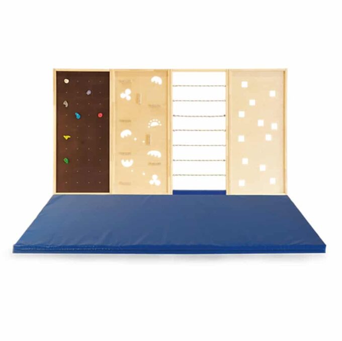Feststehende Kletterwand Klettermax 4-tlg.: Die Lieferung erfolgt komplett mit Montagematerial für 40 cm Wandabstand. Die Montage erfolgt an der Wand und im Fußboden. Bei vorhandener Fußbodenheizung bitten wir um Mitteilung. Länge 4 m, Höhe 2,15 m