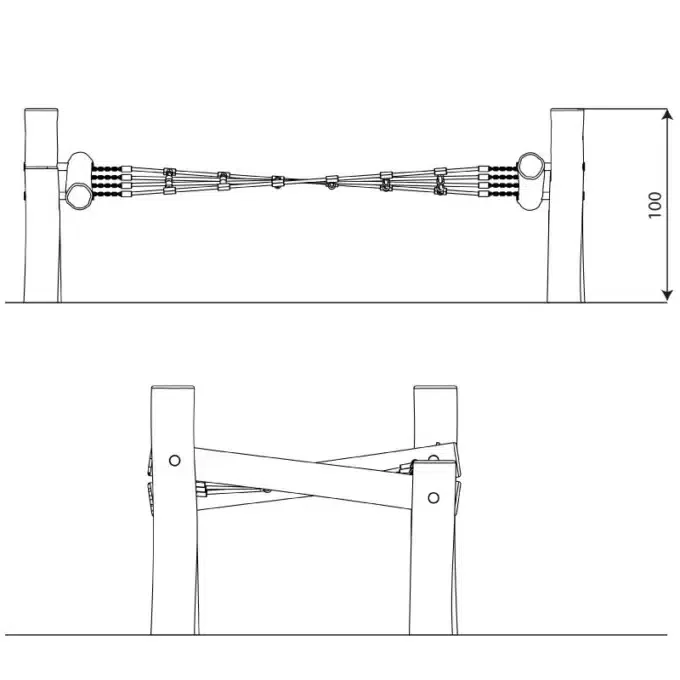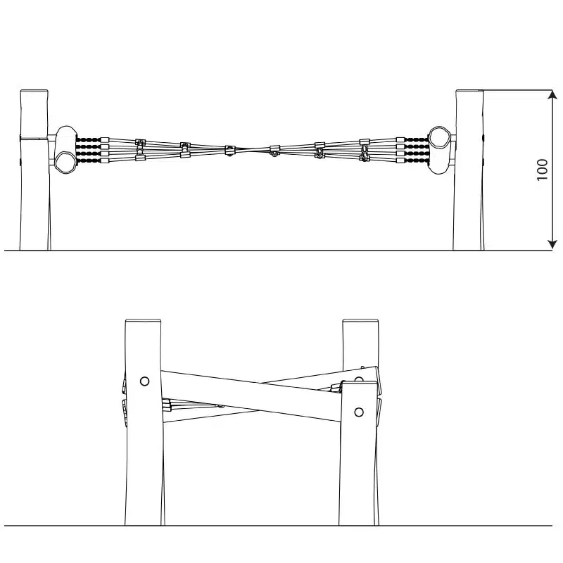- Seile: Stahlseile in Polypropylen-Geflecht, verbunden mit langlebigen Kunststoff-, Edelstahl- oder Aluminiumelementen