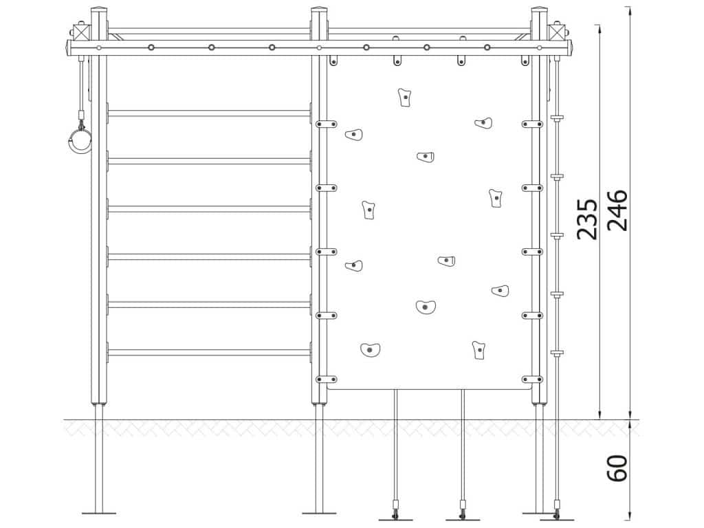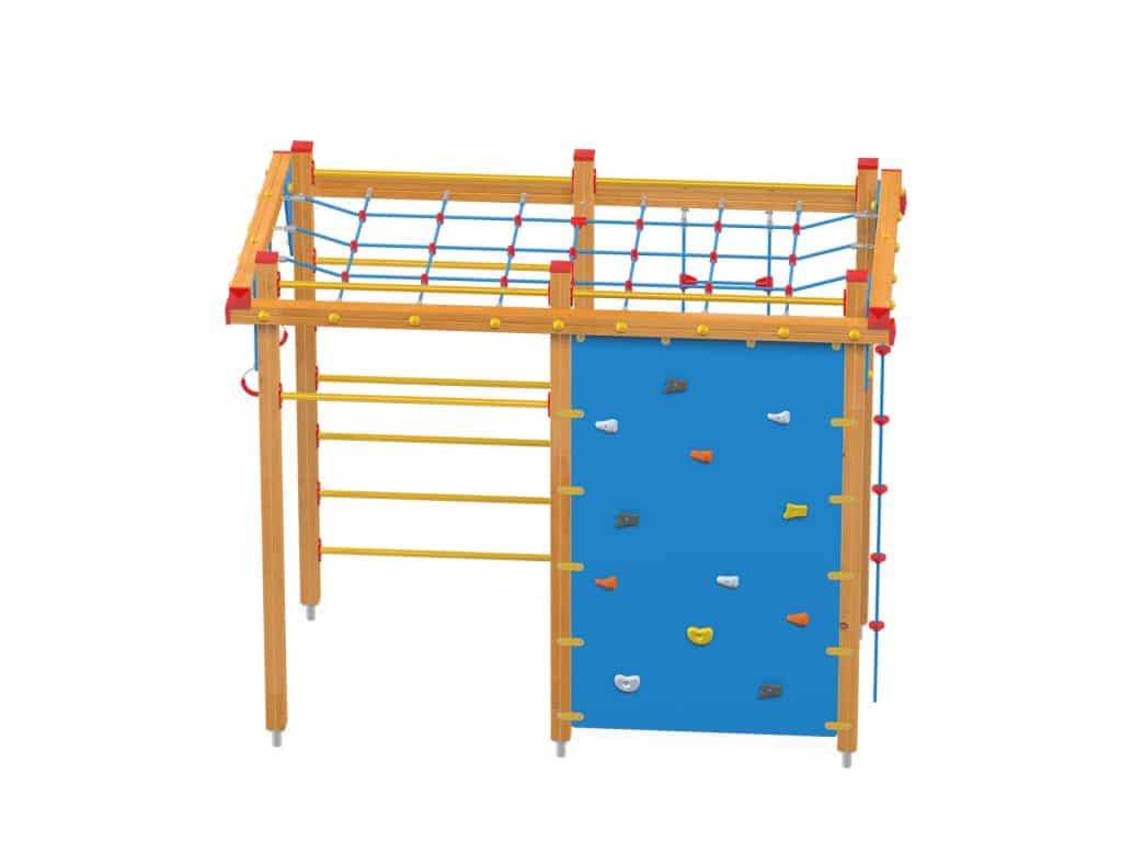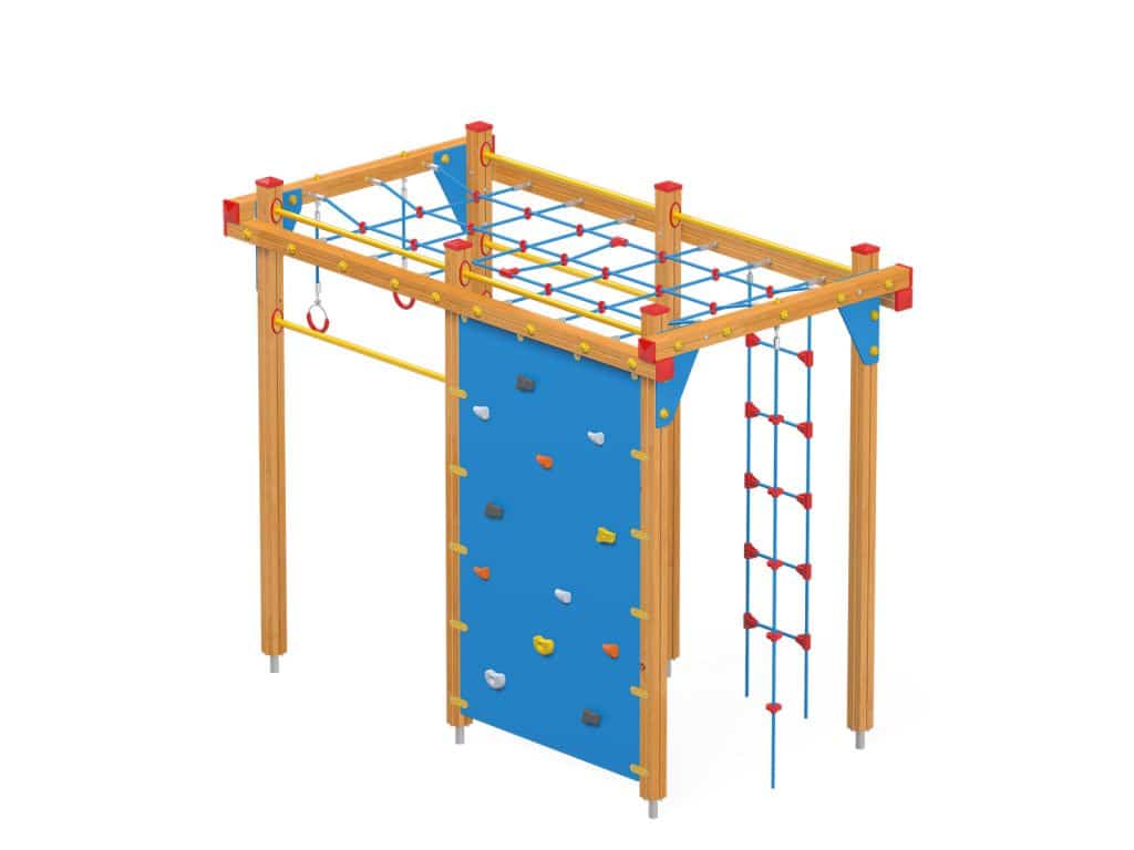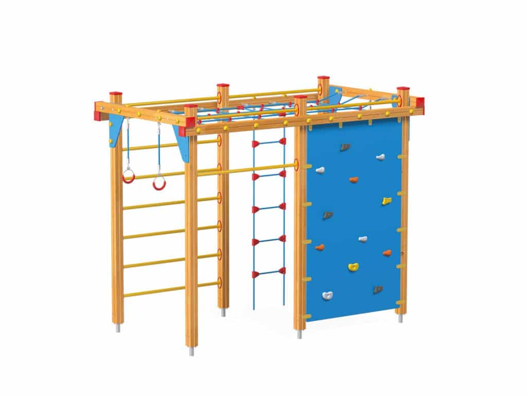 Fitnessgerät. Spielen unterstützt die Körperentwicklung und Koordination. Unterschiedliche Arten von Eingängen und Wänden erfordern unterschiedliche Klettertechniken und regen unterschiedliche Muskelgruppen zur Bewegung an. Beim Klettern ist es sehr wichtig, den Körper richtig zu tragen, denken Sie an die Regel der 3 Stützpunkte. Stabile und langlebige Konstruktion sorgt für Sicherheit und Fahrspaß.