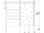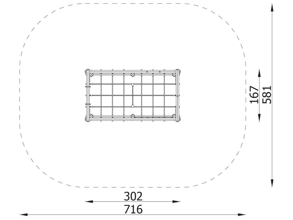 - Material: Die Tragpfosten sind quadratisch und haben einen Querschnitt von 9×9 cm. Sie bestehen aus Brettschichtholz und werden 10 cm über dem Boden mit Metalldübeln befestigt. Seile aus Polypropylen mit Stahlkern, Stärke 16-18 mm, vandalismus- und UV-beständig. Alle Fittings und Anschlüsse sind witterungs- und UV-beständig. Holzelemente werden geölt oder mit einer Farblasur überzogen. Stahlelemente sind mit Zinkschicht und Pulverlackierung gegen Korrosion geschützt.