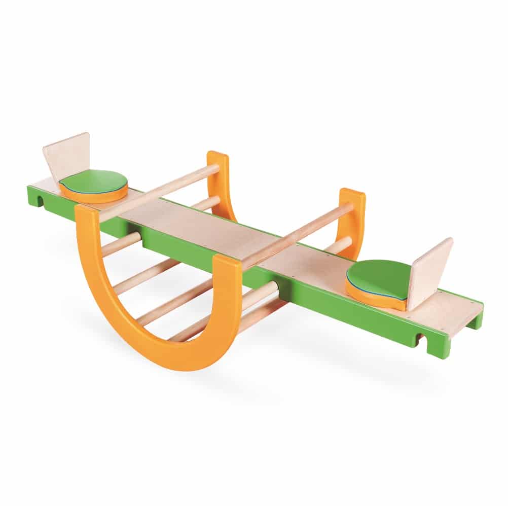 Die beiden Klettertunnel sind 58 × 58 × 40 cm, das Balancier-/Wippbrett ist 150 cm lang, 20 cm breit und mit 2 Sitzen versehen.