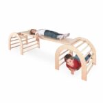 Das Set besteht aus 2 Kletterbögen mit 72 × 72 cm und ist 62 cm hoch. Die Seitenteile sind aus Multiplex, Sprossen aus Hartholz. Das Laufbrett ist 180 cm lang und 35 cm breit, an der Unterseite sind verschiedene Möglichkeiten zum Einhängen in die Kletterbögen. Zum Schutz sind außen Lehnen angebracht.