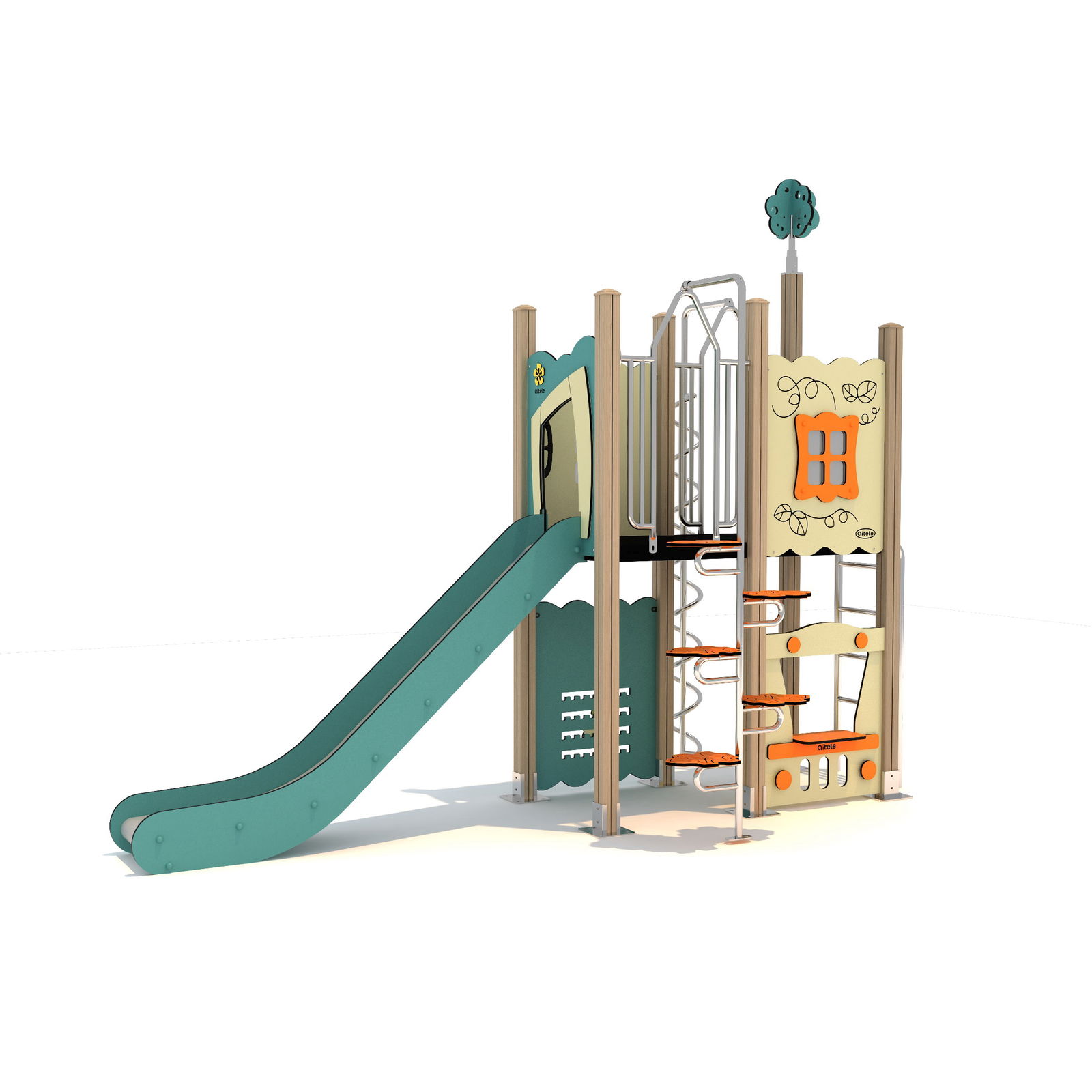 Speziell für Kinder im Alter von 3 bis 6 Jahren entworfen, kombiniert dieser Turm fantasievolles Rollenspiel mit anspruchsvoller motorischer Förderung. Um das 150 cm hohe Burgverlies zu erreichen, stehen den kleinen Abenteurern drei verschiedene Aufstiege zur Verfügung, darunter eine herausfordernde Kletterspirale. Oben angekommen, wird die Fantasie durch interaktive Spielwände angeregt, bevor die schnelle Kunststoffrutsche einen aufregenden Fluchtweg aus der Burg bietet. Dank der extrem robusten und wartungsfreien Konstruktion aus Aluminium und HPL ist Burgano eine Investition, die über viele Jahre hinweg unzählige Ritterturniere und Burgbelagerungen überstehen wird.