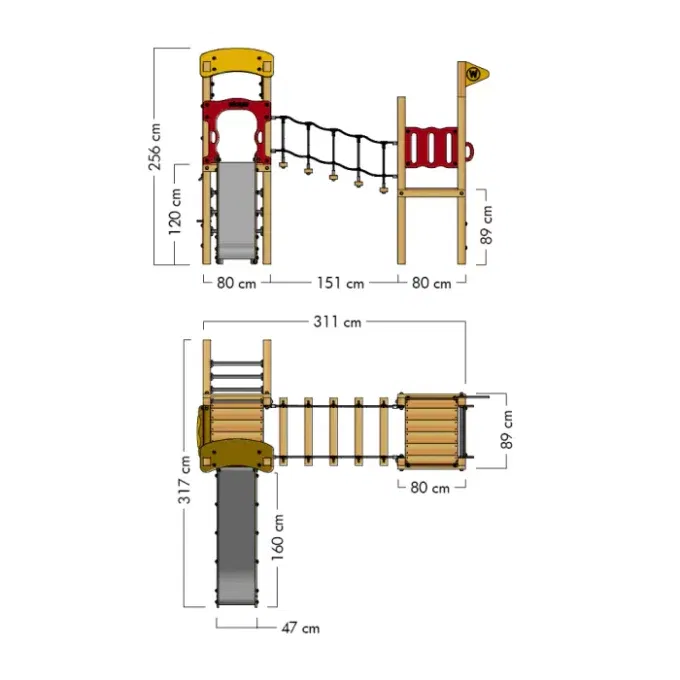 Der Kletterturm besteht aus imprägniertem Massivholz und ist von höchster Qualität. Er wurde so entworfen, dass er den Anforderungen für öffentliche Spielplätze in vollem Umfang gerecht wird. Jedes Element ist durchdacht: Die 19 mm dicken Platten aus vandalismusbeständigem HDPE bestehen zu 80 % aus recyceltem Material, was gleichzeitig Umweltbewusstsein und Sicherheit für die Kinder gewährleistet. Alle Metallteile und sichtbaren Schrauben sind aus Edelstahl A2 gefertigt, um höchste Stabilität und Langlebigkeit zu garantieren. Mit einer 5-jährigen Garantie auf alle Holz-, Edelstahl- und HDPE-Teile sind Sie auf der sicheren Seite!