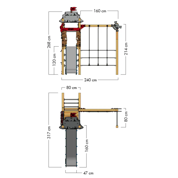 Die Sicherheit der kleinen Abenteurer liegt uns am Herzen. Deshalb wird der Wickey PRO MAGIC Tale+ gemäß den strengen Richtlinien der EN 1176 entwickelt, um ein sicheres Spielumfeld zu garantieren. Das Spielgerät besteht aus europäischem Vollholz, das imprägniert ist, um Witterungseinflüssen standzuhalten. Die farbigen HDPE-Platten sind nicht nur vandalismusbeständig, sondern bestehen auch zu 80 % aus recyceltem Material. Damit schaffst du nicht nur einen Spielraum, sondern trägst auch aktiv zum Umweltschutz bei. Qualität, die „Designed in Germany“ ist und den Anspruch auf Sicherheit und Langlebigkeit erfüllt!